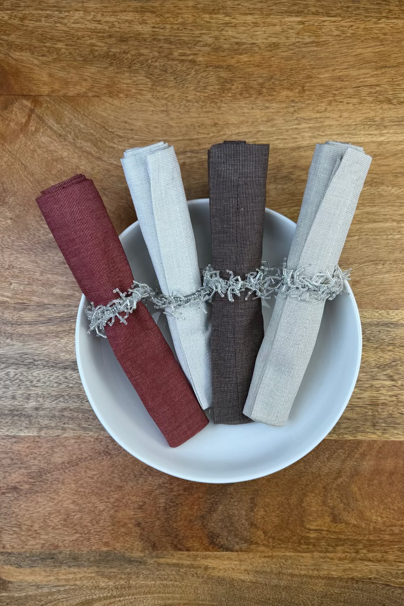 Mit unseren Servietten aus Stoff setzen Sie auf Nachhaltigkeit, Qualität und zeitloses Design. Als wieder verwendbare Alternative zu Papier unterstützen sie eine umweltbewusste und stilvolle Tischkultur.