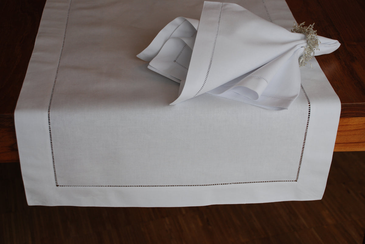 Viele der Stücke sind mit liebevollen handwerklichen Details versehen, darunter ein fein gearbeiteter Hohlsaum oder sauber ausgearbeitete Kuvertecken, die der Tischwäsche eine hochwertige und zeitlose Note geben. Diese sorgfältige Verarbeitung sorgt dafür, dass jedes Produkt nicht nur dekorativ ist, sondern auch ein Stück traditioneller Textilkunst widerspiegelt.
